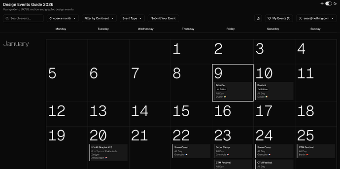 The template here is based on design events for 2026, but fork it and make it for any events or other things you find it useful for!