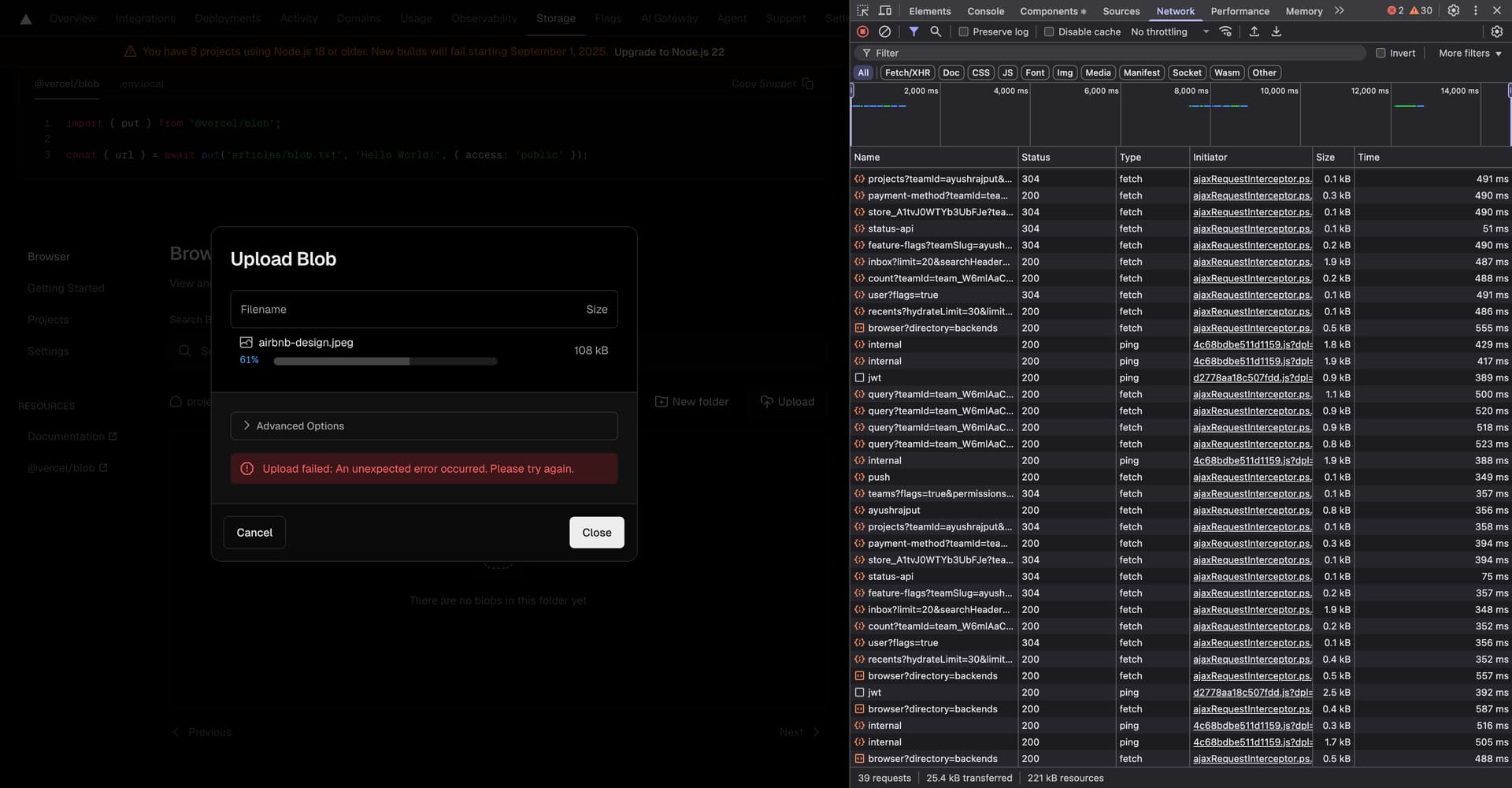 Not able to upload on vercel blob storage tried uploading since 2 days with many types of images.